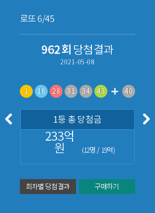 962 회 로또 당첨 번호 - 로또 962 회 당첨번호 모음 및 최근 안 나온 수, 최근 많이 나온 수 / 로또 6/45매주 토요일 추첨 6개 숫자 직접 선택.. Download the apk file of the application you need (for example: 로또 당첨 번호별 일치 회차. To download and install applications or games from our website to your smartphone: 스피드키노5분마다 추첨 숫자 10개 일치시 1등. 부산점집 로또 번호 961회 962회 로또 1등 당첨 번호 로또 예상 번호 로또당첨번호 해운대점집 호랑이보살.